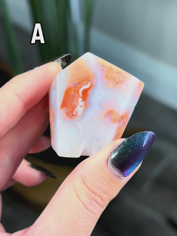 Choose your own "Cotton Candy Agate" (also known as Pink Petal Agate) freeform from Mexico! Freeforms are cut in a faceted style which allows display on multiple sides & angles!